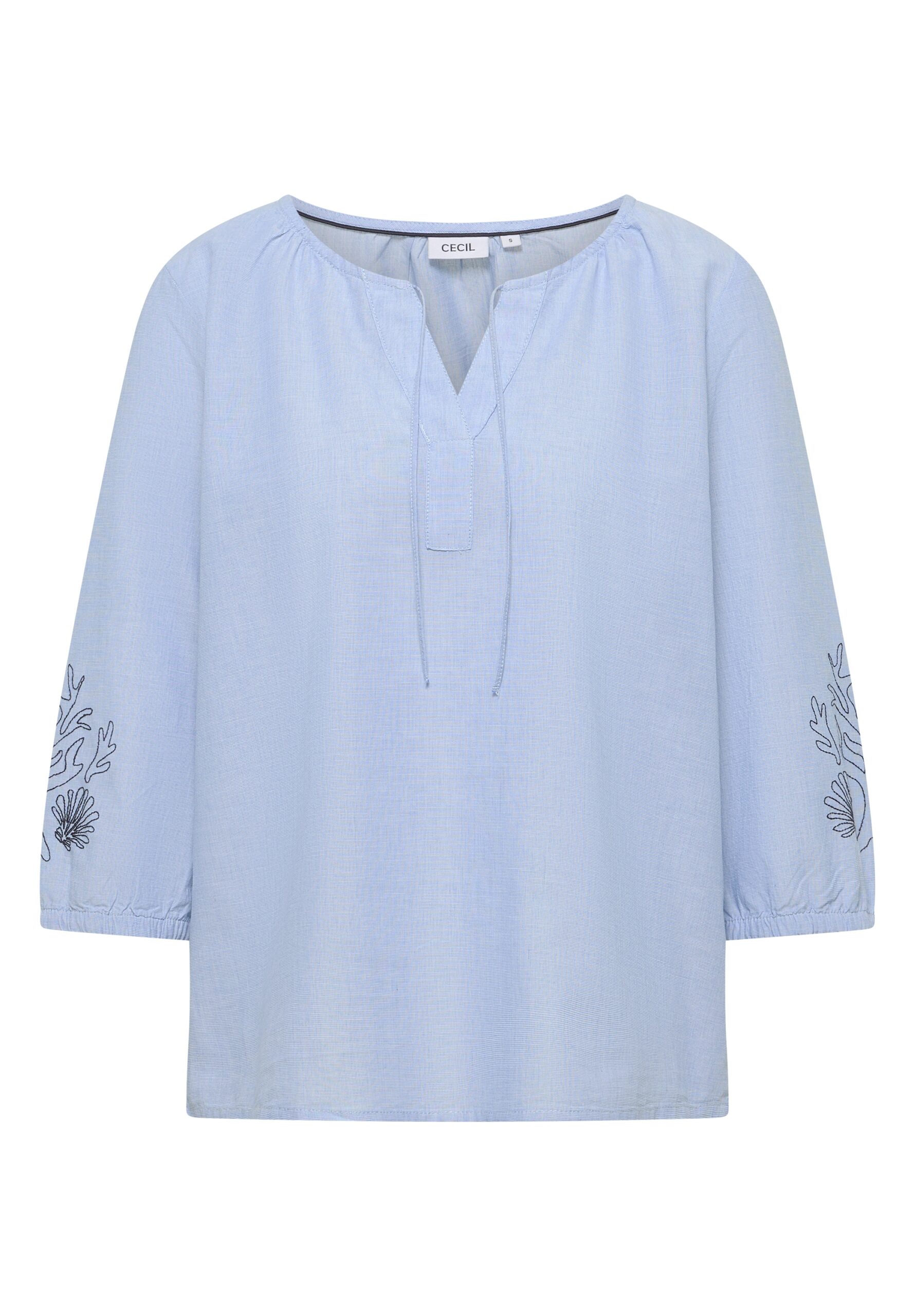 CECIL Chambray Tunika Bluse – Blau | Damen Bluse mit Stickerei & 3/4-Arm