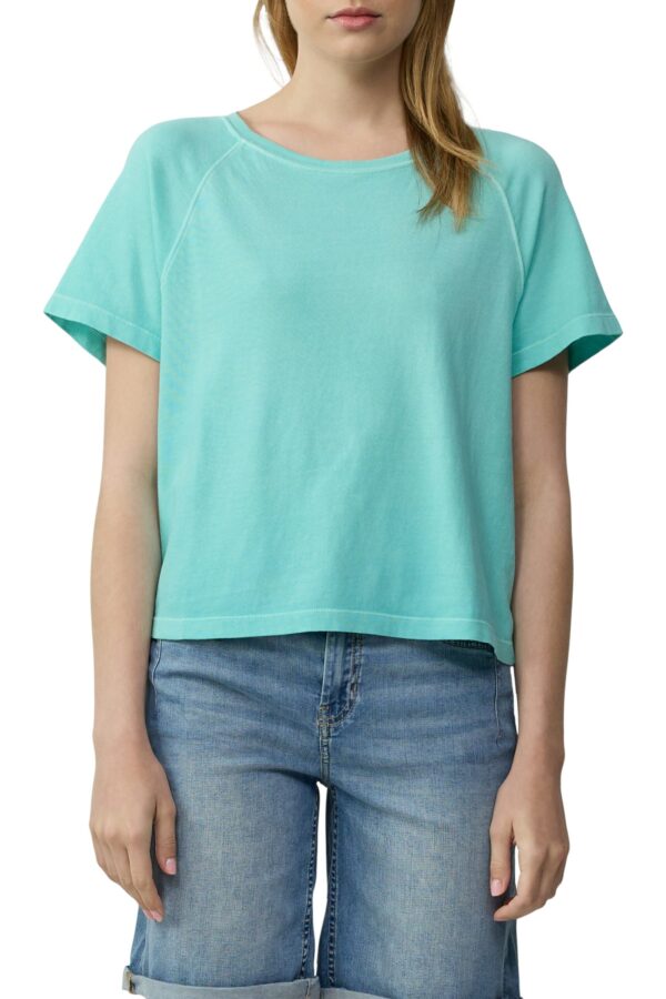 Gefertigt aus einem angenehmen Viskosemix (65% Viskose, 35% Polyester) liegt das Shirt leicht auf der Haut und sorgt für hohen Tragekomfort – perfekt für warme Tage. Dank der unifarbenen Details in Kombination mit Streifenlässt sich das Shirt vielseitig kombinieren, z. B. zu Shorts, Jeans oder leichten Röcken.