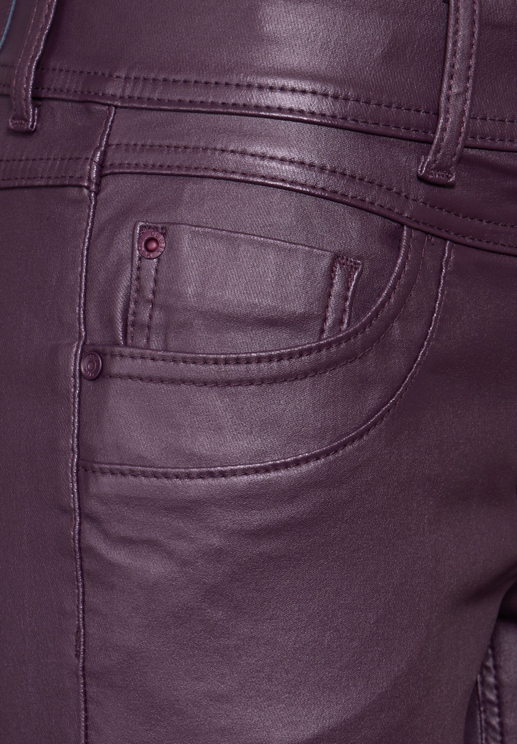 Die beschichtete Hose von CECIL in edlem Beloved Be bringt coolen Leder-Style in deinen Casual-Look. Die Damenhose im lässigen Casual Fit mit Mid Waist und Slim Legs sitzt perfekt und sorgt für eine moderne Silhouette. Die klassische 5-Pocket-Form und der modische Leder-Look machen sie zum vielseitigen Hingucker.