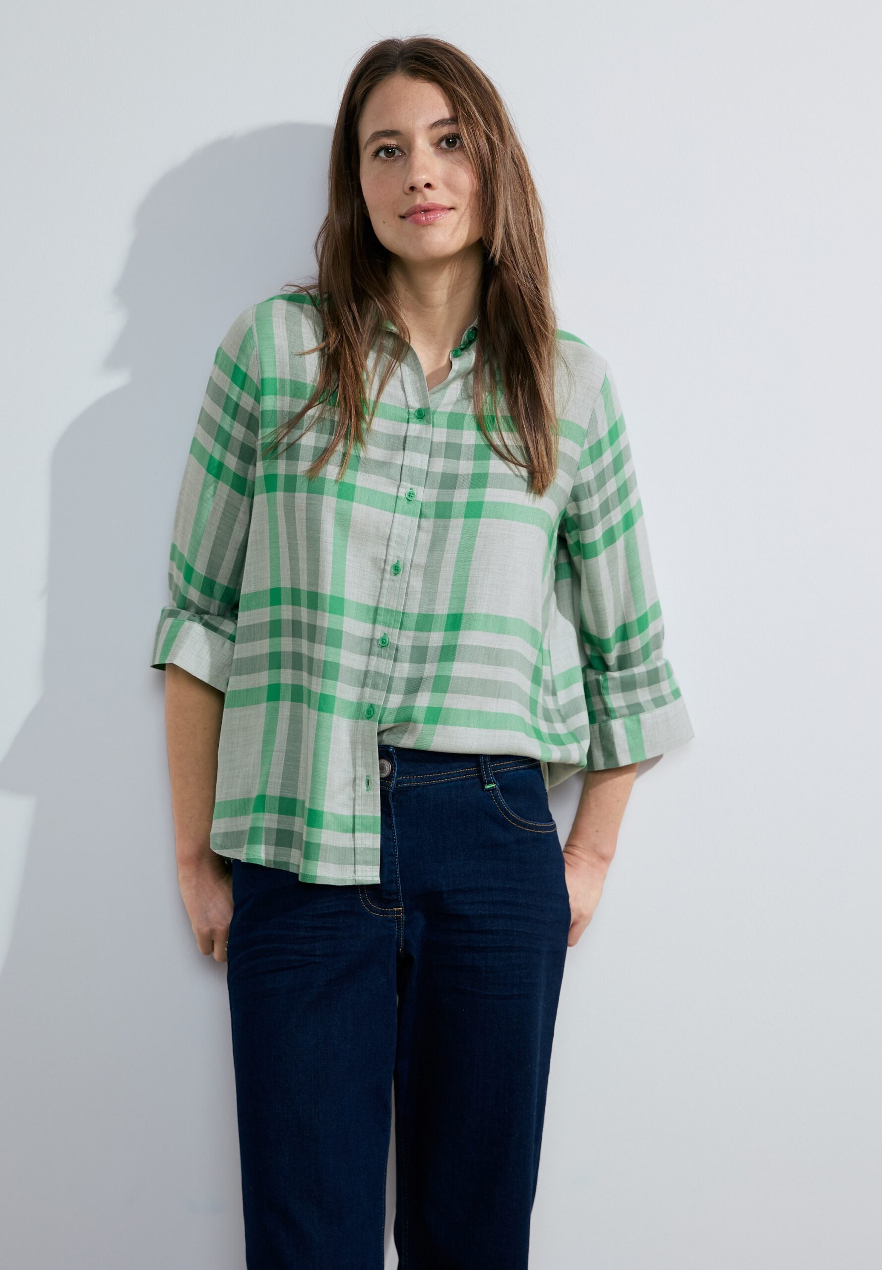 Klassisch, zeitlos und vielseitig: Diese Hemdbluse von CECIL überzeugt mit einem stilvollen Karo-Muster, Kragen und Knopfleiste. Die Turn-Up-Langärmel machen die Bluse besonders flexibel und ermöglichen verschiedene Tragevarianten. Aus weicher Viskose gefertigt, bietet sie hohen Tragekomfort und lässt sich von lässig bis leger vielseitig kombinieren – perfekt für Alltag, Freizeit oder Office-Looks.