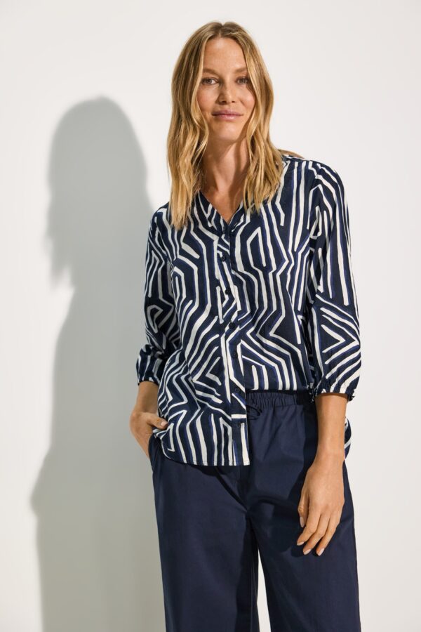 CECIL Bluse Splitneck Print – Universal Blue | Damen Viskosebluse mit Muster