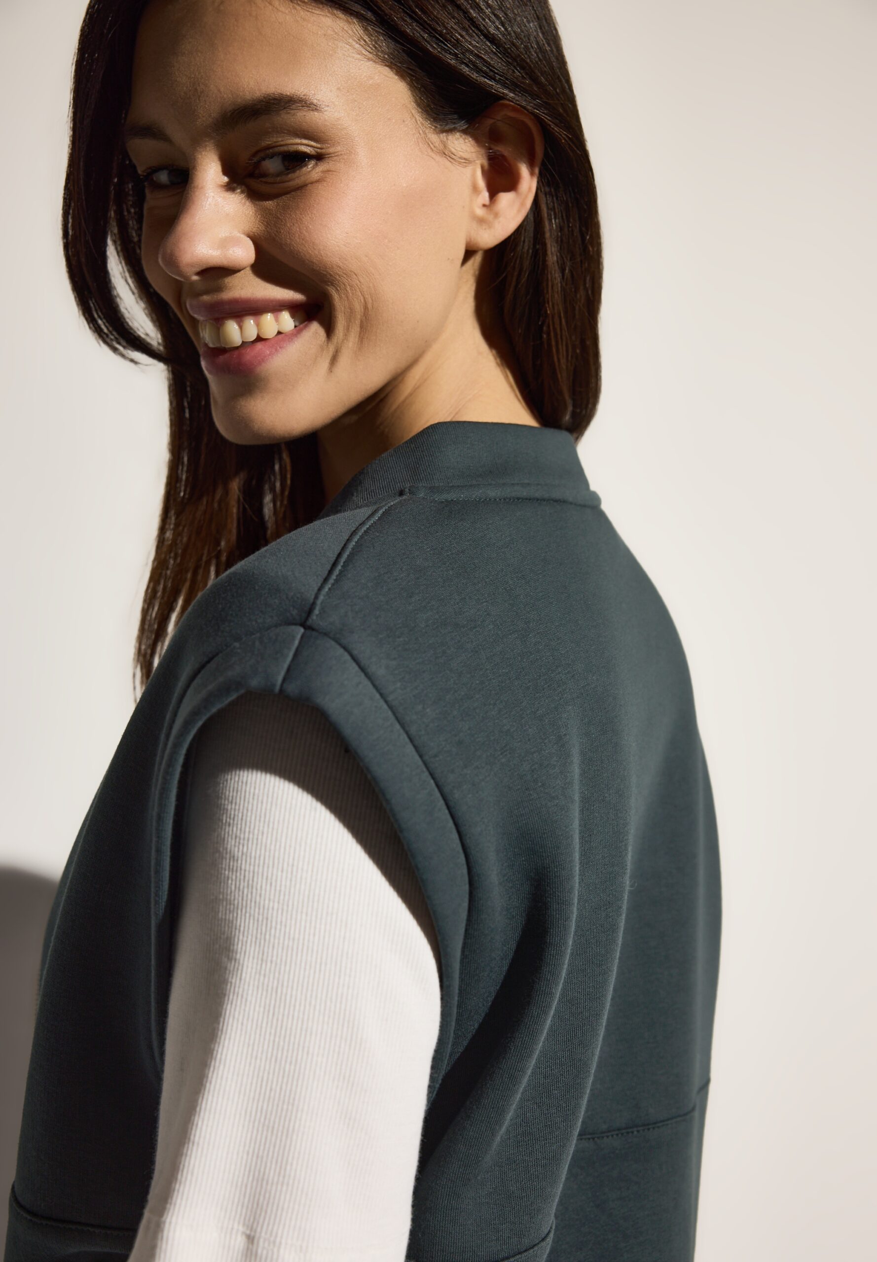 Sportlich, lässig und vielseitig! Die Sweat Weste von CECIL für Damen ist das perfekte Layering Piece, das deinem Outfit eine moderne und sportliche Note verleiht. Der Stehkragen, die seitlichen Taschen und der Tunnelzug am Saumsorgen für Funktionalität und eine individuelle Passform. Der gemütliche Baumwollmix garantiert zudem einen angenehmen Tragekomfort, der den ganzen Tag hält.