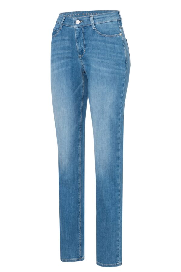 Die DREAM SUN Wonder Light Denim von MAC Jeans vereint stilvolles Design mit maximalem Tragekomfort. Diese Straight Fit Jeans mit geradem, schlankem Bein und mittlerer Leibhöhe bietet eine bequeme Passform und ein leichtes, besonders weiches Tragegefühl.