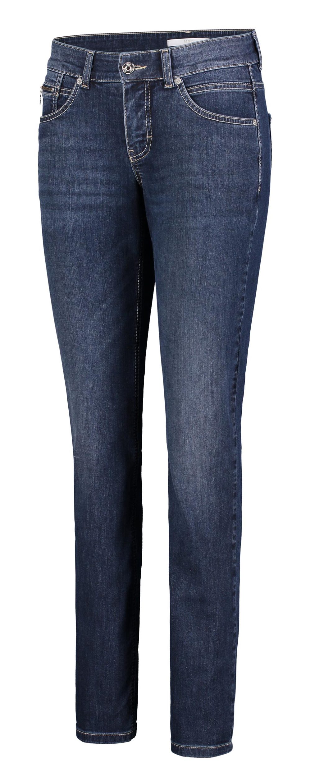 Die MAC Slim Perfect Fit Forever Denim kombiniert einen schlanken, femininen Schnitt mit maximalem Tragekomfort. Durch den innovativen Perfect Fit Forever Denim bleibt die Jeans dauerhaft formstabil, ist angenehm elastisch und schmiegt sich optimal an die Figur an. Der moderne Slim Fit mit mittlerer Leibhöhe macht sie zu einem vielseitigen Allrounder – ob im Alltag, Büro oder in der Freizeit.
