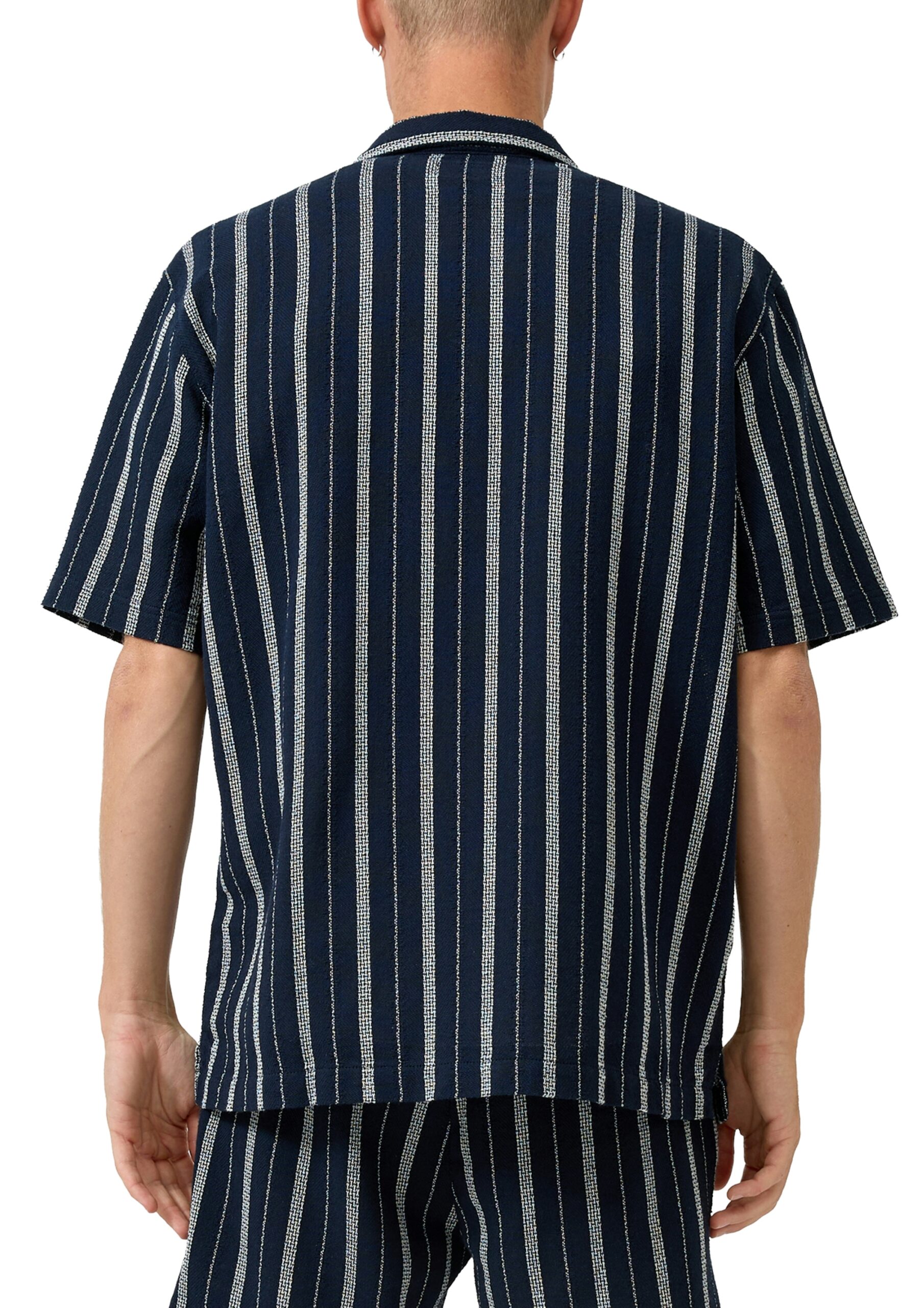 QS by s.Oliver Herren Hemd – Kurzarmhemd gestreift in Blau (Resort Fit)