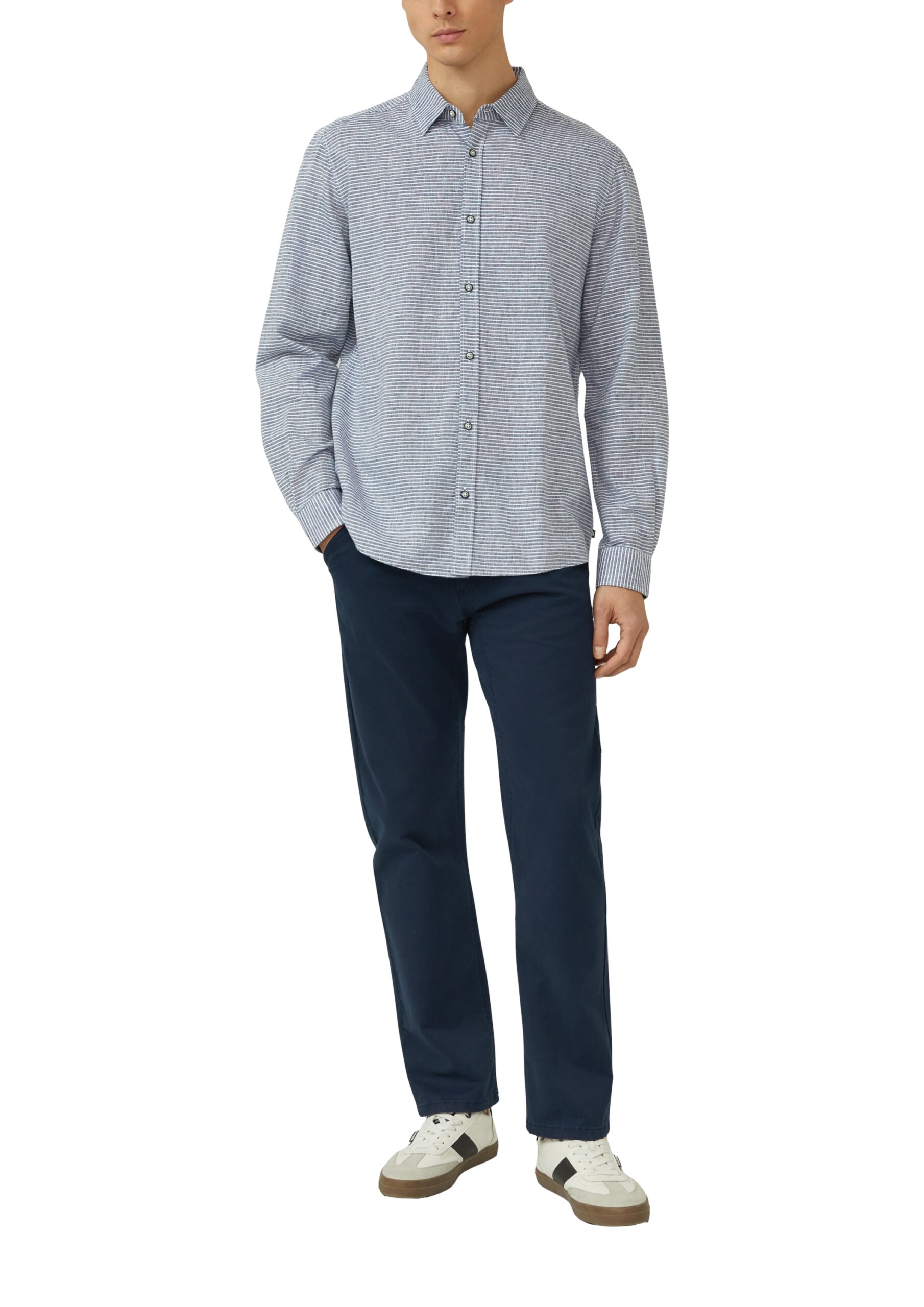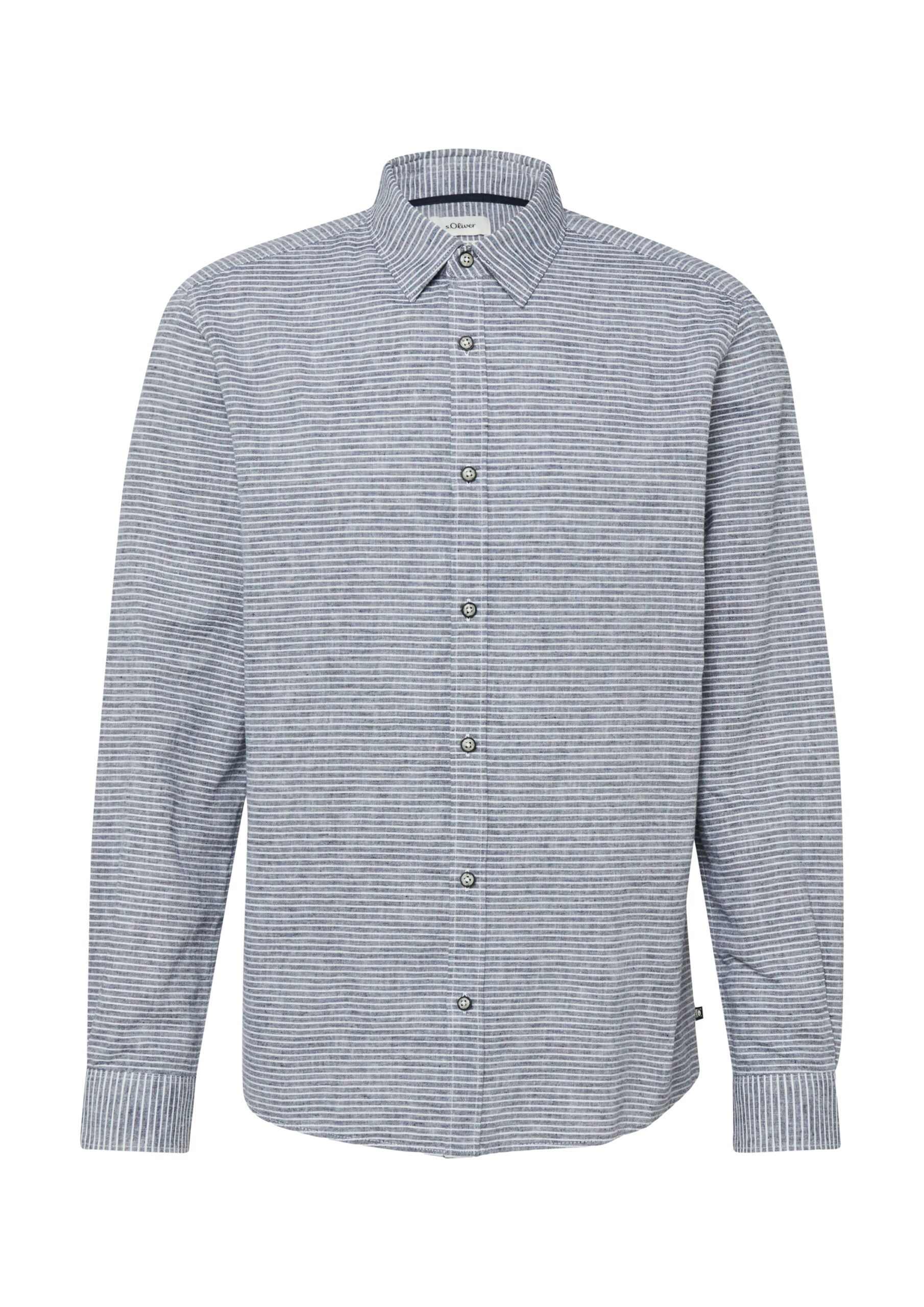 s.Oliver Hemd Herren – Blau | Regular Fit Leinenmix Langarmhemd mit Streifen