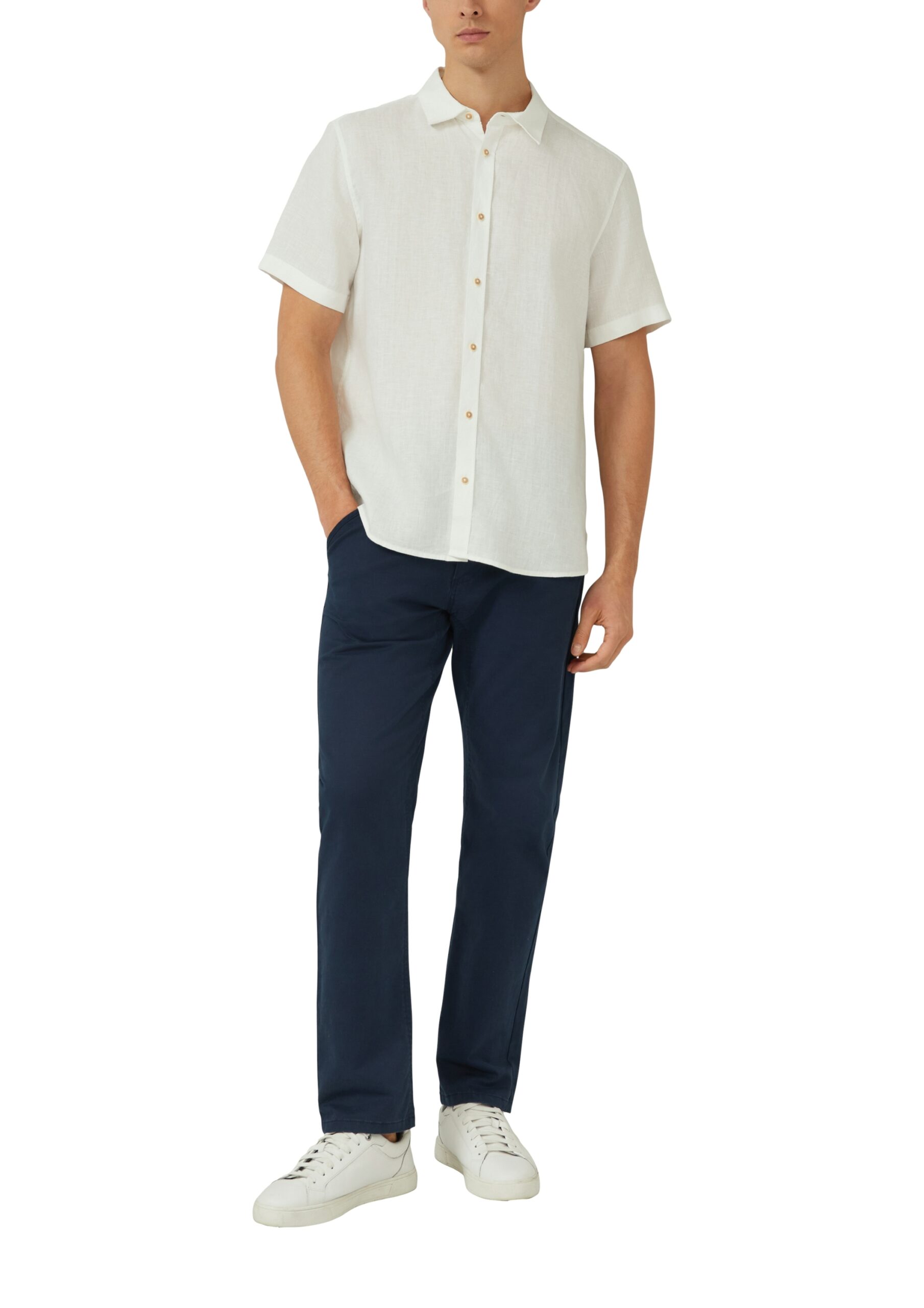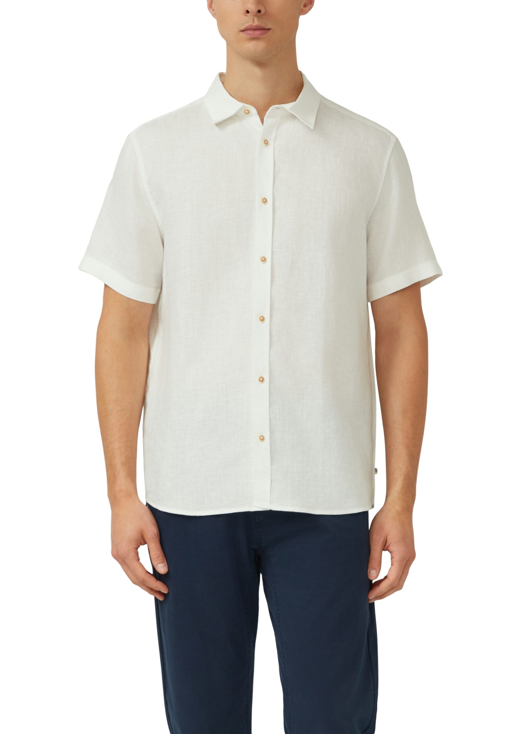 s.Oliver Hemd Herren – Weiß | Regular Fit Leinenhemd mit Kentkragen