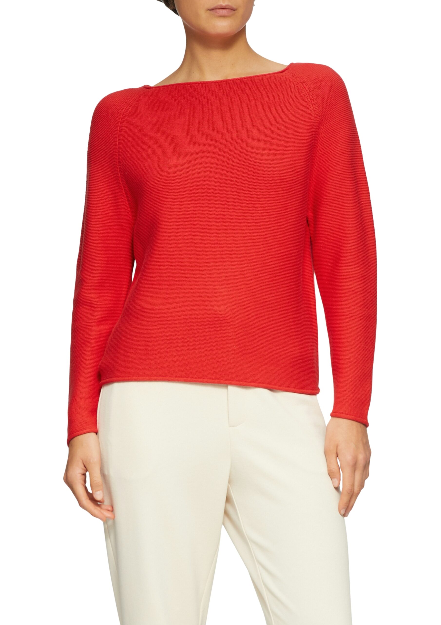 Dieser kuschelige Strickpullover in kräftigem Rot ist ein echtes Lieblingsstück für kühle Tage. Der moderne U-Boot-Ausschnitt und der lässige Fit verleihen deinem Look eine feminine Leichtigkeit, während der weiche Baumwollmixangenehm wärmt. Ob beim Kaffee-Date, Stadtbummel oder Spaziergang – du siehst immer stylisch aus und fühlst dich rundum wohl.
