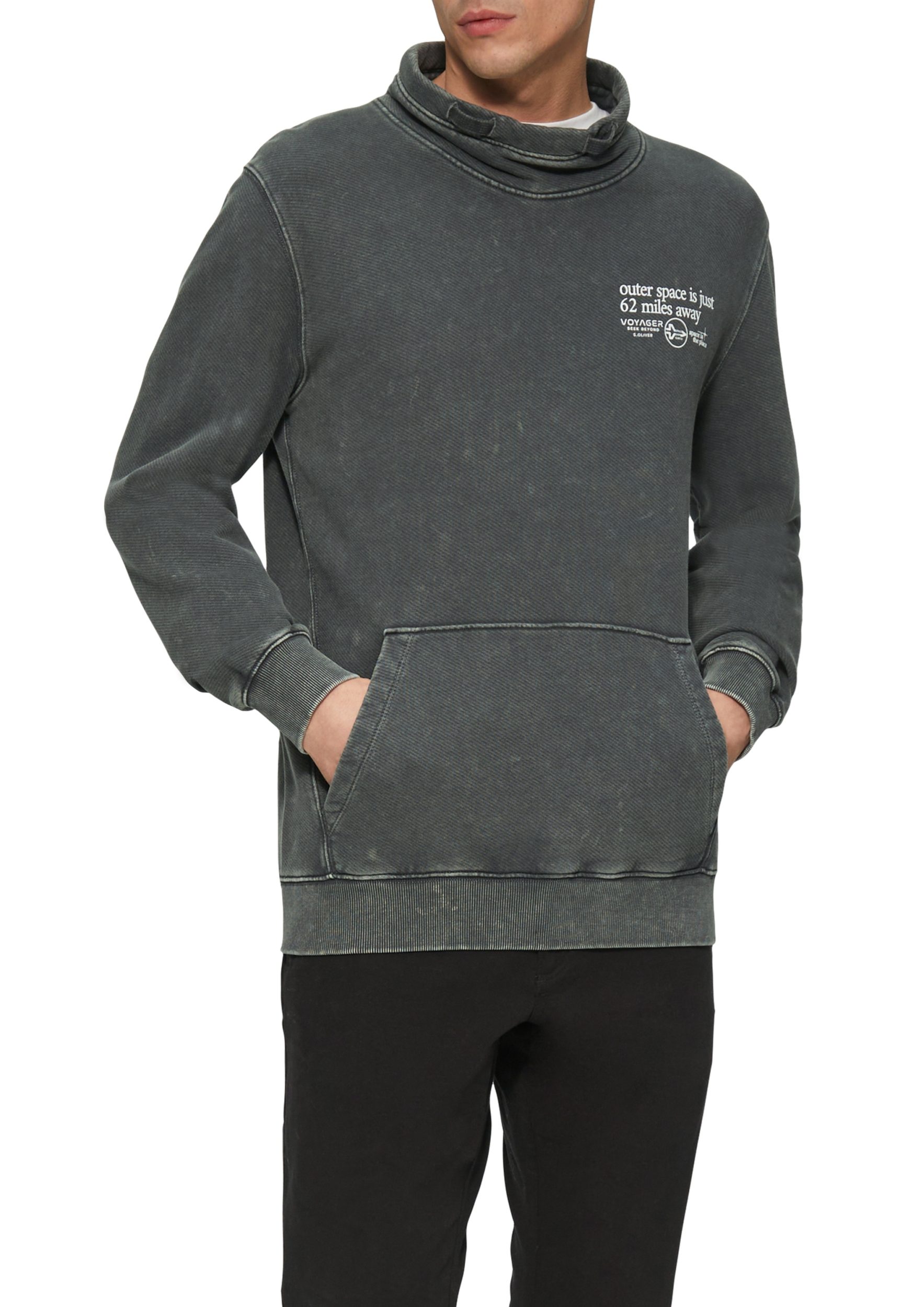 Details: Stehkragen, Kängurutasche, Frontprint, lange Ärmel