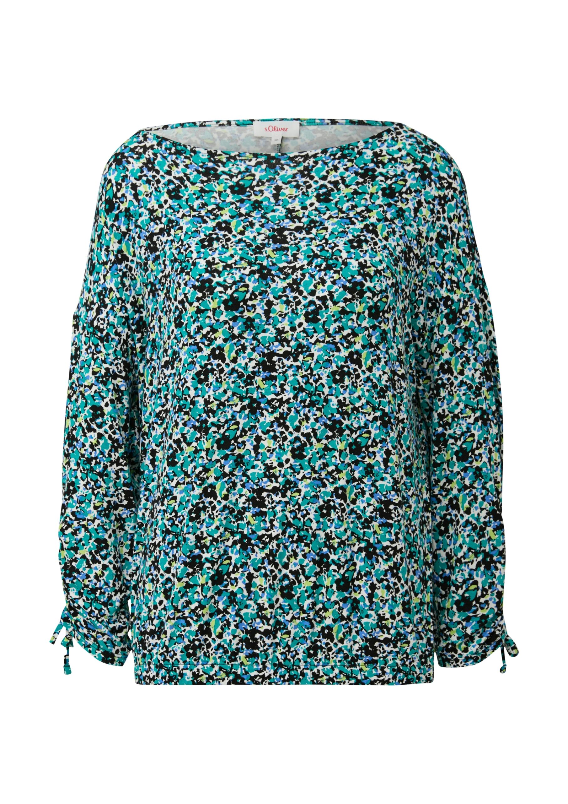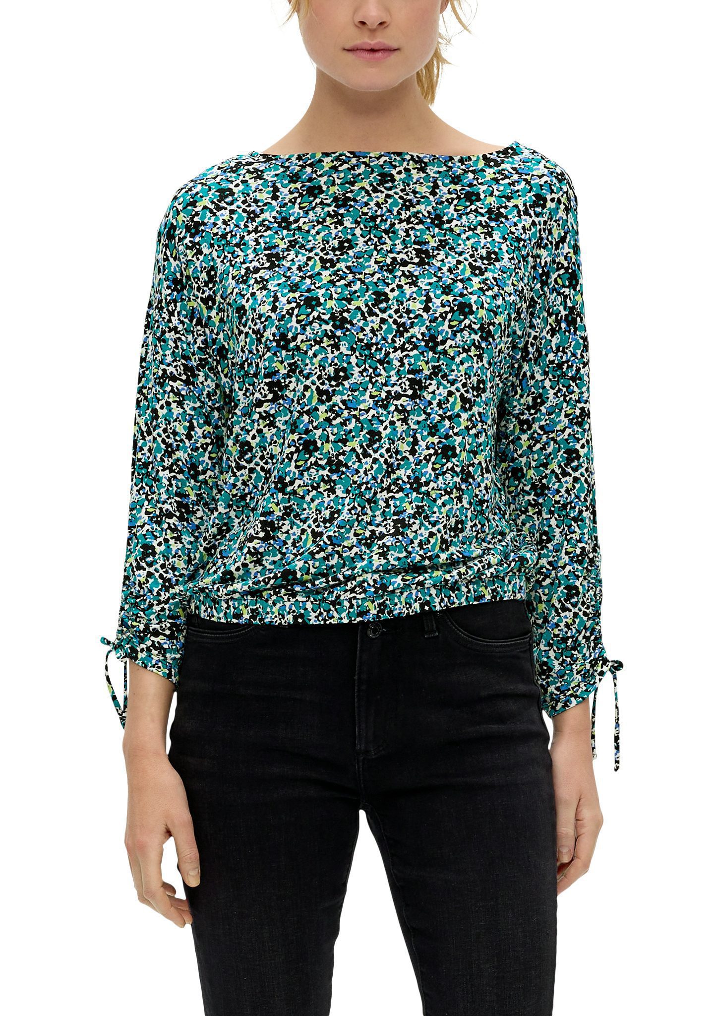 s.Oliver T-Shirt in Grey/Black – Langarmshirt mit Ärmelraffung