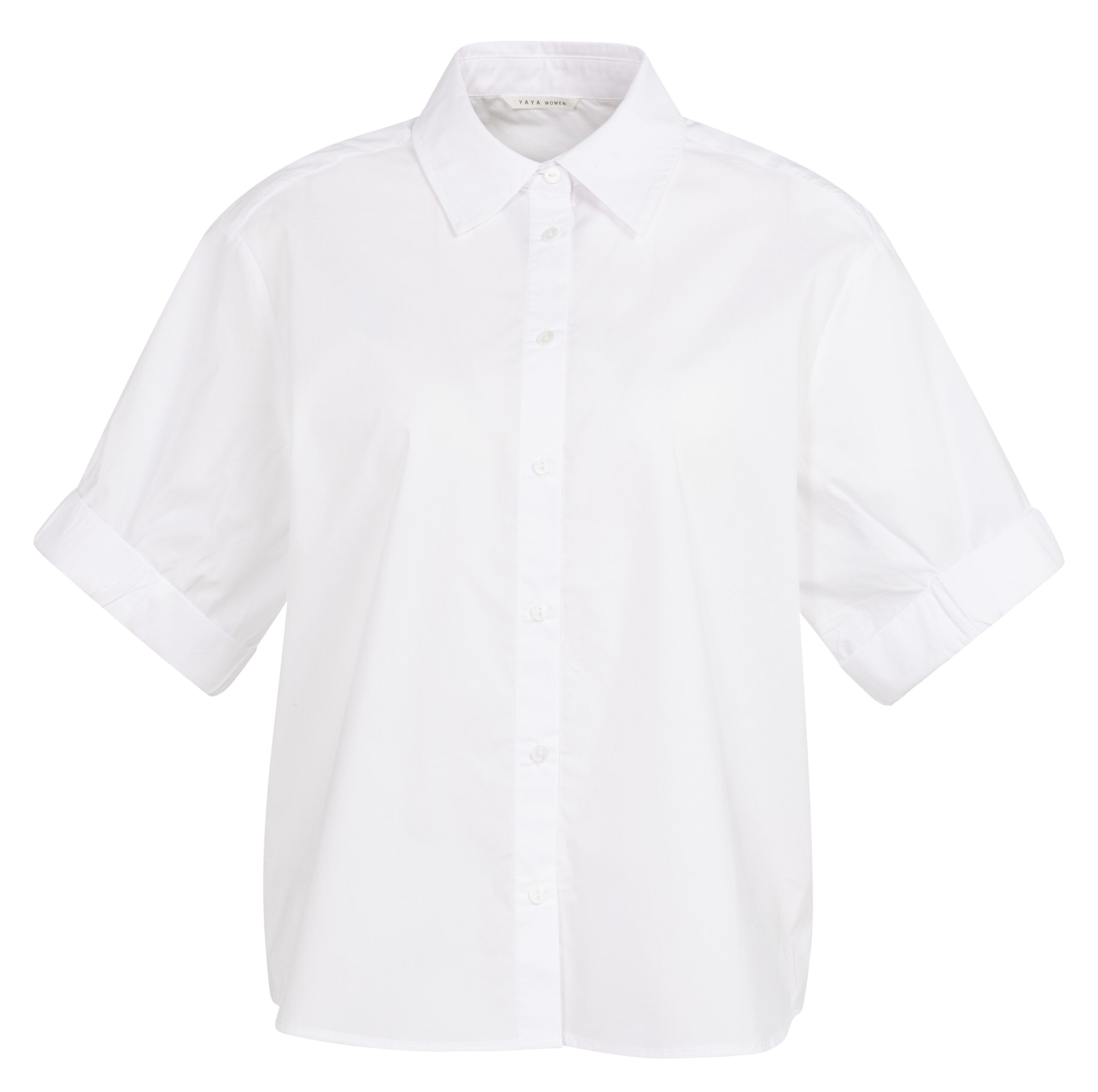 YAYA Damen Bluse – Weiß | Kurzarm Bluse mit Krempelärmeln
